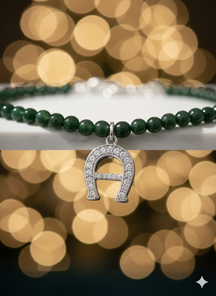 🌟 تعليقة “A” الشهيرة: تصميم حدوة الحصان المرصعة بالكريستال، رمز الحظ والأناقة الخالدة للعلامة التجارية.