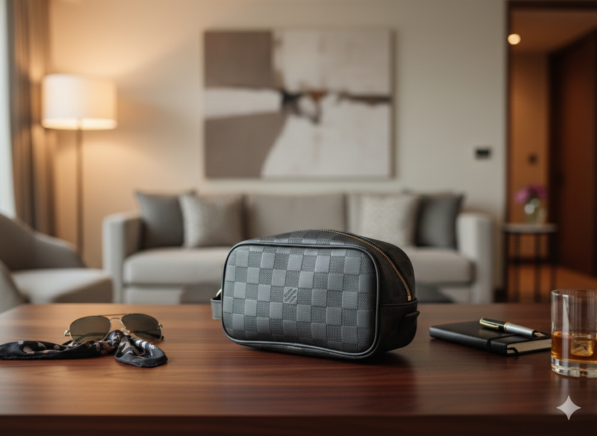 التصميم الأيقوني: تتميز بطبعة Damier Graphite الشهيرة، التي تجمع بين اللون الرمادي والفحمي الداكن، مما يمنحها مظهراً ذكورياً وجذاباً يناسب جميع الإطلالات.